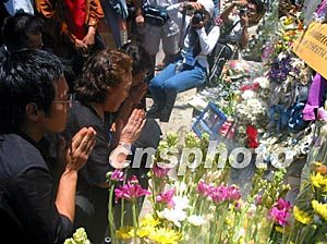 10月13日,巴厘島爆炸案的幸存者和死難者的親屬們舉行儀式,為死難者祈禱。2002年10月12日,印尼巴厘島發生恐怖襲擊爆炸案,共有二百余人在那次事件中遇難。Ic/cnsphoto攝