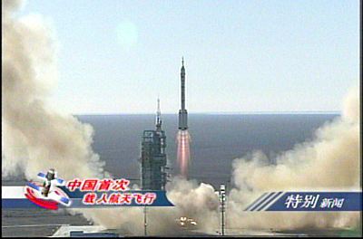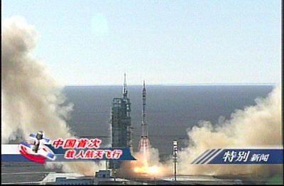 “神舟”五號載人飛船成功發射(2)。(電視截圖)