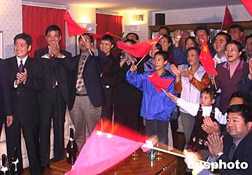 圖:中國留美學(xué)生慶賀中國載人航天飛行成功