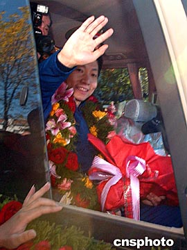 相關報道:“歡迎你回家!”航天員楊利偉回到北京航天城 (2003-10-16 13:02:52)