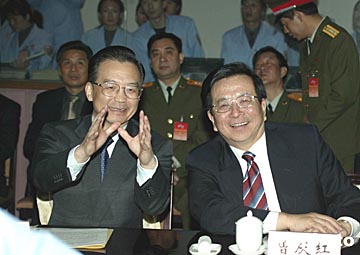 圖:溫家寶曾慶紅觀看神舟五號載人飛船返回
