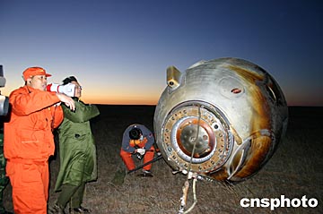 相關報道:多圖:“神舟”五號載人飛船成功著陸 (2003-10-16 14:10:48)
