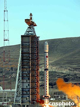 剎那間,伴隨著長長的桔紅的火焰,“長征四號乙”運載沖天而起、直刺蒼穹。震天動地的巨大聲響,在黃土高原上久久回蕩。