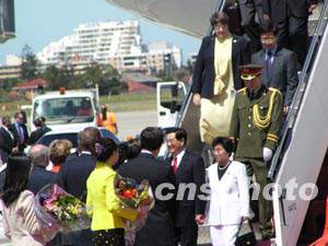到機場歡迎胡錦濤主席的還有聯邦和新州官員、華人華僑、中資機構負責人、中國留學生代表和中國使領館工作人員。