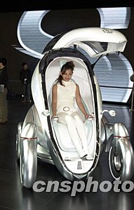 日本汽車龍頭企業(yè)豐田公司在東京國際汽車展上推出專門為2005年日本愛知世博會(huì)設(shè)計(jì)的新概念車,這種一人單乘的新概念車車身角度可自由升降,構(gòu)成不同的精美造型。中新社記者:王健