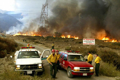 已經被選下臺的加州州長戴維斯現在擔任滅火總指揮。他宣布加州處于緊急狀態,并向布什總統求助。
