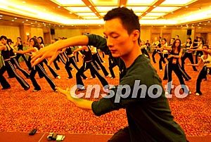 參加新絲路世界模特大賽的韓國小姐,十月二十七日在中國杭州一招一式學太極。中新社記者:賈國榮