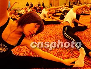 參加新絲路世界模特大賽的日本小姐,十月二十七日在杭州跟隨中國教師學習瑜珈功夫。中新社記者:賈國榮