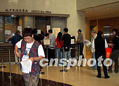 中國首名航天員楊利偉 31日到香港訪問六日。29日6時開始,在大會堂、科學館等18個地點,免費派發6萬張航天展入場券,每人限取兩張。圖為清晨6時許位于葵青劇院已有市民排隊輪候。作者:譚達明