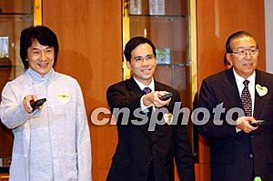 香港長江集團在香港公益金成立35周年之際,舉辦“長和愛心為公益”籌款活動,圖為10月30日,長江實業董事總經理兼副主席李澤巨、公益金籌募委員會聯席主席李業廣和影星成龍出席記者會。作者:洪少葵