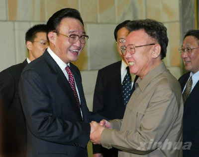 中新社平壤十月三十日電 朝鮮勞動(dòng)黨總書記、國防委員會(huì)委員長金正日今天下午在此間會(huì)見了中共中央政治局常委、中國全國人大常委會(huì)委員長吳邦國。雙方在友好的氣氛中進(jìn)行了深入交談。