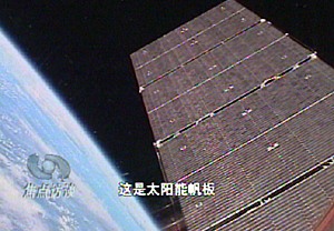 楊利偉所乘坐的“神舟”五號(hào)飛船的太陽能帆板(以上均為CCTV電視畫面截圖)