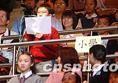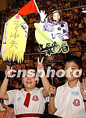 11月3日在香港伊利莎白體育館舉行的香港中、小學(xué)生與楊利偉及航天科學(xué)家見面會上,學(xué)生興高采烈舉著楊利偉像歡呼。中新社記者:錢興強(qiáng)