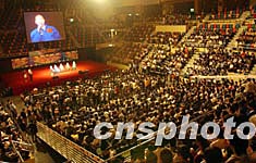 香港中、小學(xué)生與楊利偉及航天科學(xué)家11月3日在香港伊利莎白體育館舉行見面會,首飛航天員楊利偉在會上回答學(xué)生提問。中新社記者:錢興強(qiáng)
