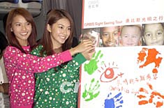 樂壇組合2R兩名成員黃婉君(Roseane)、黃婉佩(Race)(左起)11月6日在香港出席奧比斯眼科飛機(jī)醫(yī)院《"讓我看見世界"關(guān)注失明兒童行動(dòng)》啟動(dòng)儀式,2R并獲委任為"奧比斯兒童護(hù)眼之星"。中新社記者:鄧慶樂