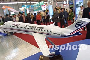 七日,由中航商用飛機有限公司研制的新一代支線飛機ARJ21亮相上海工博會,ARJ21是為滿足高原地區飛行條件而設計的,但同樣可以勝任平原地區的客運工作,它的出現將能改變目前支線航線難以盈利的難題。作者:湯彥俊