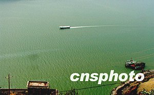 中國三峽工程已將三峽大壩水位提高到一百三十九米高程,蓄水進展順利。水位升高后,長江三峽地區(qū)水質出現重大變化,提前兩個月轉為清澈。圖為一艘快艇在清澈的重慶奉節(jié)長江段江水航行。作者:周會