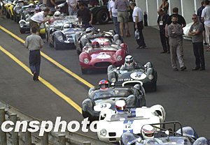 第五十屆澳門格蘭披治老爺車大賽八日舉行大賽車紀念杯及金禧杯排位賽,圖為參賽的老爺車隊正在向賽場挺進。中新社記者:李剛