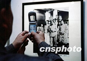 為紀念一代偉人毛澤東誕辰一百一十周年,曾在北京中南海毛澤東身邊任專職攝影師的呂厚民先生,十一月十一日在山東省城濟南東方現代藝術館舉辦了《偉人毛澤東》攝影作品展。一位中年人,舉起可拍照的手機拍攝下珍貴的作品。作者:郝帆