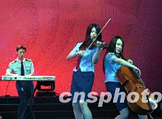 空政歌舞團(tuán)演員表演器樂三重奏《野蜂飛舞》。中新社記者 孫自法 攝