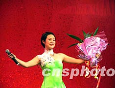 空政歌舞團女演員珊瑚在專場慰問演出中,為中國航天科工集團公司061基地員工深情演唱英文歌曲《我將永遠愛你》。中新社記者 孫自法 攝