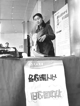 一家商場里的“冬衣暖人心,舊衣回收處”,專門回收干凈不破的衣物,由市殘聯(lián)轉(zhuǎn)贈給國內(nèi)一些困難地區(qū)的人們,每天都有很多人前來捐衣物。