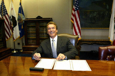 圖:施瓦辛格新官上任 喜簽首個州長令