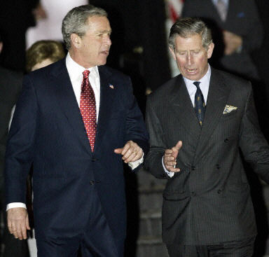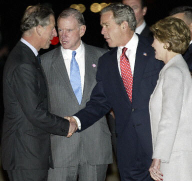 英國王儲查爾斯到倫敦希思羅機(jī)場迎接布什。