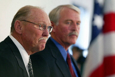 圣塔芭芭拉地區檢察官史奈登(圖左)及治安官安德森出席記者會