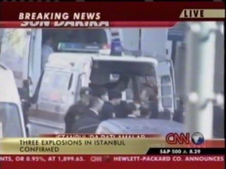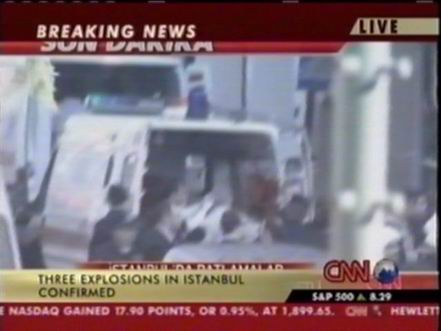 北京時間11月20日下午,位于土耳其伊斯坦布爾北部的土耳其匯豐銀行總部附近發生兩次爆炸,部分銀行建筑被摧毀。此后英國駐伊斯坦布爾領事館以及一個居民區和一座清真寺也遭到襲擊。圖為爆炸中受傷人員被抬上救護車。(春風)