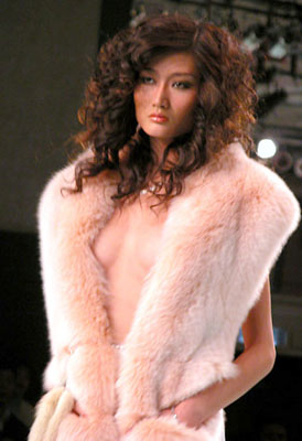 中國國際時裝周上東北虎皮草公司宣布中國推出第一個高級晚裝品牌NE·TIGER,圖為高級皮草晚裝展示。