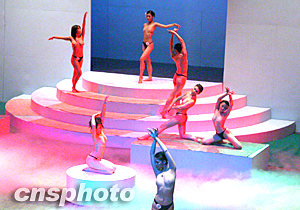 首屆中國西部模特大賽.人體藝術模特賽入圍賽,20日晚在成都藝術中心舉行,多名女模特登臺展示優美形體。作者:楊杰