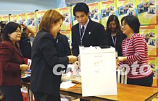 選舉管理委員會的工作人員22日在投票站內做最后準備,確保選舉投票順利進行。中新社記者:洪少葵