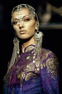 11月22日在印度的東北部港口城市加爾各答,印度模特在一場主題為'Lakme Stylefile Fall Winter Show 2003'的時裝展示上,展示了9位印度頂級設計師的最新作品。