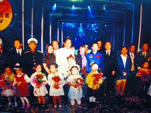 節(jié)目的最后,楊利偉登臺與全體演職員一道唱起了《同一首歌》———“同樣的感受給了我們同樣的渴望,同樣的歡樂給了我們《同一首歌》。全場同和,掌聲不息,晚會現(xiàn)場成為歡樂的海洋。(記者李巖)