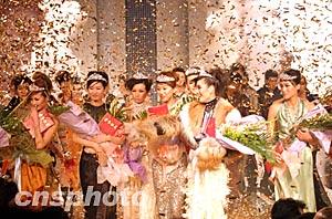 十一月二十六日晚,2003中國國際時裝周頒獎典禮在北京中國大飯店舉行,最佳職業時裝模特、最佳造型師、中國時裝設計“金頂獎”等眾多獎項各歸其主,為期一周的時裝盛會在歡笑中閉幕。中新社記者:盛佳鵬