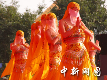 漂亮的湘妹子在“東南花都”表演阿拉伯舞蹈,為花博會助興。中新社記者余瑞冬攝