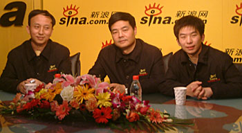 主持人:各位新浪網友,大家好!這里是新浪嘉賓聊天室,今天我們非常高興地請?zhí)栃浅菒坌闹貌稍L團的成員來到我們的聊天室和各位網友在線交流如何扶助弱勢群體。首先介紹一下各位嘉賓,這位是青年社會活動家宋體金先生(右二),另外一位是冠城大通有限公司總經理韓國建先生(左二),還有一位記者韓雨亭(右一)是這次愛心之旅特派記者,同時也是《人物周刊》的記者。很高興三位到新浪做客。先和各位網友打一個招呼吧。