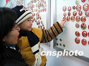 12月6日,山西省集郵協會、山西省集郵公司等在太原市舉行“紀念毛澤東誕生一百一十周年”集郵展暨紀念郵票發行式,“文革”時期流行的毛澤東像章令當今的兒童好奇。作者:張云