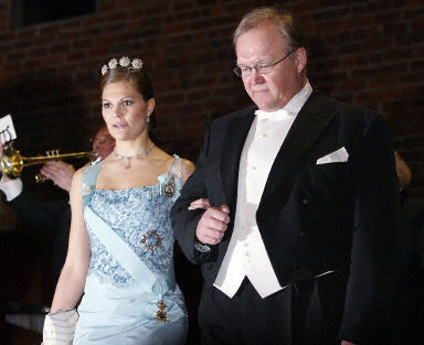 瑞典首相約蘭·佩爾松和瑞典公主Victoria出席頒獎(jiǎng)儀式。