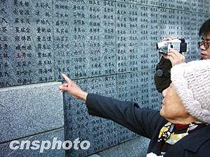今天,在南京的十多個大屠殺紀念碑所在地,都同時舉行了悼念活動。