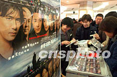 十二月中旬,眾多顧客在北京一家書店搶購與電影同步發行的《無間道3》影碟。該片正在北京等地熱映,在中國內地的票房取得開門紅。中新社記者:張煒