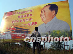 國道三二三線廣東韶關(guān)南雄市城區(qū)南面路邊,新近豎起了一塊大型毛澤東語錄牌。一九五七年三月,毛澤東在最高國務(wù)會議第十一次會議上說:“要提倡節(jié)育,要有計劃地生育。”作者:馮昶