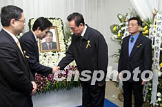 圖為陳云林參加溫世仁先生生的追悼會并向溫世仁先生遺像三鞠躬。
