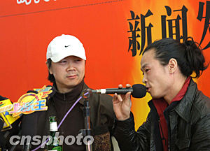 由廣東美術館主辦的“時代的晚上——時代玫瑰園——中國首屆新年搖滾音樂節”將于十二月三十一日在廣州舉行,屆時將有中國搖滾二十年最優秀的搖滾樂隊參加演出。圖為中國著名的搖滾音樂家崔健和王磊在新聞發布會上向媒體介紹該搖滾音樂節的情況。作者:羅仰明