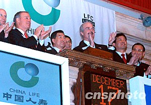 相關報道:中國人壽在紐約證交所上市 首日交易價格漲27% (2003-12-18 11:20:08)