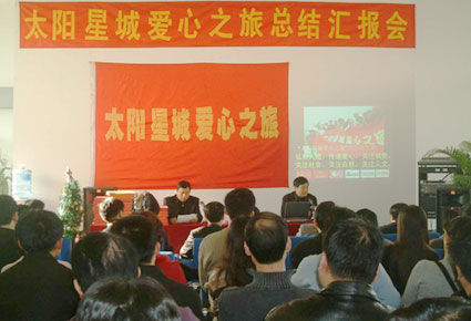 太陽星城愛心之旅總策劃、華夏愛心團副團長宋體金在總結匯報會上告訴大家,這次“太陽星城愛心之旅”采訪活動的目的就是為了要讓更多人知道中國弱勢群體的現狀與所存在的問題,同時,也想通過“影響”,讓更多有能力幫助別人的人盡快的加入愛心團隊。利用他們這個微不足道的“影響”,去試圖改變一些人,尤其是年輕人價值觀念,通過這次活動的“影響”,將圍繞“愛心”這個主題,讓周圍的各種力量“互動”起來。他們三個月來的最大的收獲最主要的就是通過愛心之旅的方式,去影響一些能夠影響的人,同時也影響著所有參與本次活動的志愿者們的人生觀、價值觀和世界觀。
