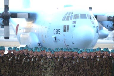 圖:日本航空自衛(wèi)隊(duì)舉行儀式準(zhǔn)備開(kāi)赴伊拉克