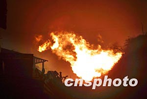 圖:重慶開縣天然氣井噴事故24日晚井噴現場
