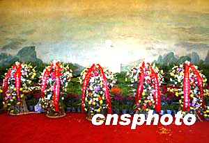 十二月二十六日是毛澤東誕辰110周年,北京毛主席紀念堂內(nèi)擺放著中共中央、國務(wù)院、全國人大常委會、中央軍委、全國政協(xié)敬獻的花籃。中新社記者:任晨鳴